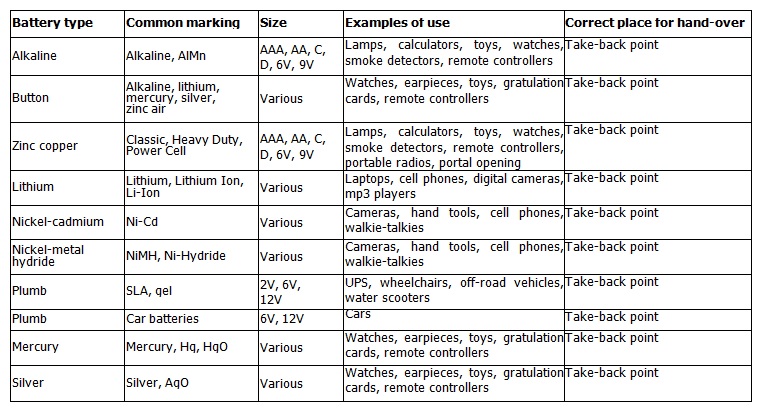 Battery types